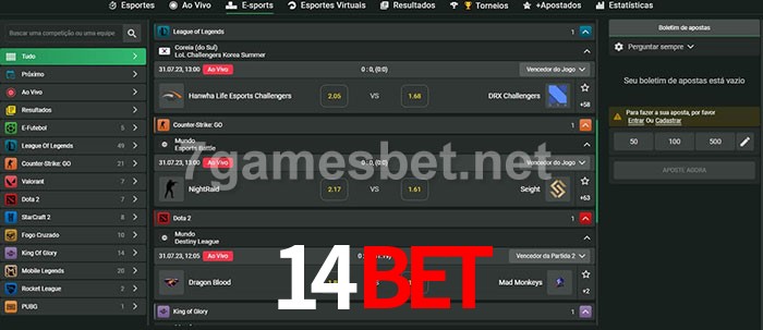 O 14bet oferece uma grande seleção de opções de apostas em e-sports com probabilidades competitivas